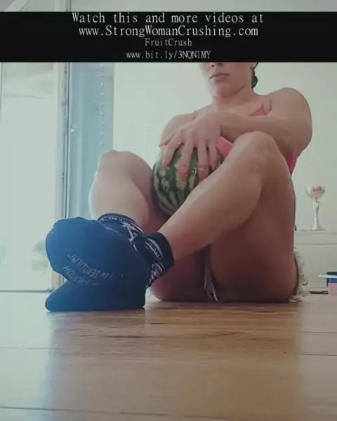 Martina Lopez in cancaloupe crushing - https://bit.ly/3NQN1MY - #Martina #FruitCrush #featsofstrength #flexfriday #musclegirllove