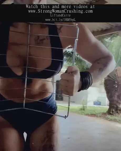 Penelope shows her strength and lifts a metal stove - https://bit.ly/3SB5bpL - #Penelope #LiftandCarry #featsofstrength #flexfriday #musclegirllove