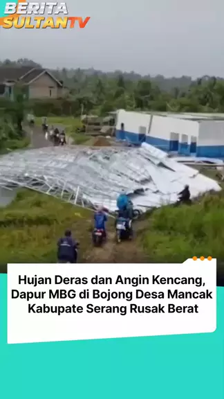 Bangunan dapur Makan Bergizi Gratis (MBG) di Kampung Bojong, Desa Mancak, Serang, rusak parah setelah diterpa angin kencang pada Jumat (27/2/2026) sekitar pukul 06.00 WIB. Hujan dengan intensitas sedang disertai angin kencang menyebabkan atap dapur MBG runtuh dan menutupi jalan. Tidak ada korban jiwa dalam insiden ini, namun aktivitas warga setempat terganggu. Petugas terkait telah turun ke lokasi untuk melakukan evakuasi dan membersihkan puing-puing. #MBGSerang #anginkencang