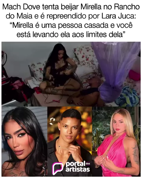 Na madrugada do Rancho do Maia_ Mach Dove protagonizou uma situação polêmica ao tentar beijar Mirella_ que é casada com Dynho Alves. A influenciadora se #RanchodoMaia