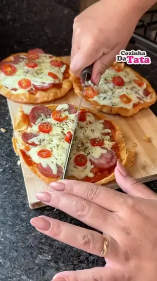 Mini pizza com massa de pastel 😋 Ingredientes: Massa de pastel redonda Molho de tomate Mussarela Calabresa Tomate Orégano Modo de fazer no vídeo #pizzacaseira #receitadepizza #minipizza