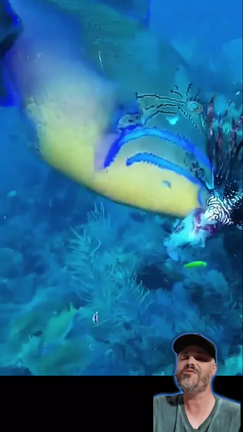 olha só está cangulo rei o peixe porco que foi treinado a comer peixe leão #aquarium #curiosidades