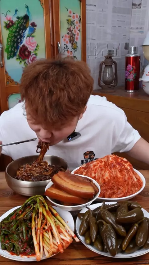 Coreano frito desta forma macarrão com pimenta picante que disse para comer macarrão com alho pimenta delicioso! T d # cozinha coreana # cozinha yanji