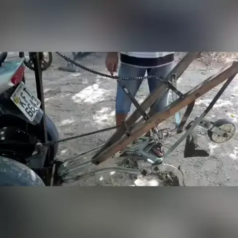 Triciclo com arado. É Brasil.