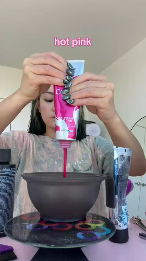 temporarily looking like those strawberry bon bons#pinkghostroot#strawberryhair#pinkandgreen#watermelonhair#pinkhair#pinkandgreenhair#coloredhair#colortransformation