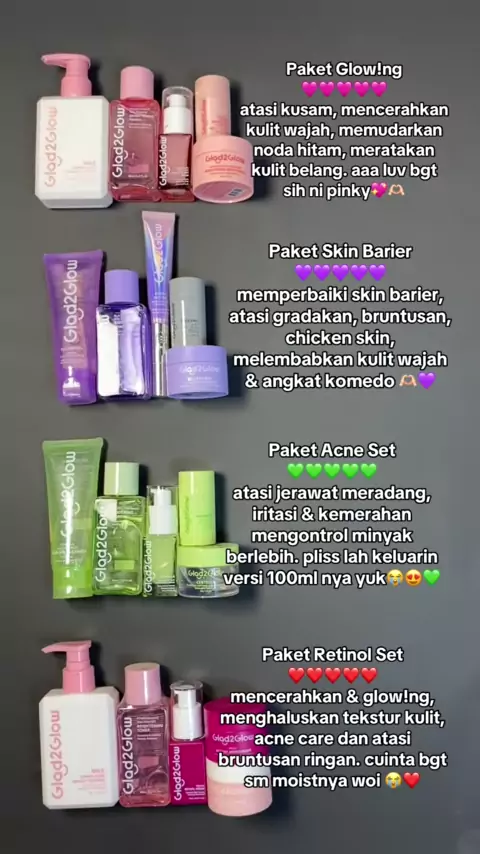 semuaa akupunyaaa😭😍💜🩷 #glad2glow #skincareroutine #moisturizer #