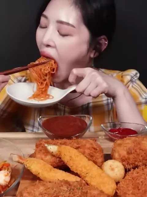 Crispy cheese roll cutlet, hash brown and spicy noodles Mukbang#boki#boki_asmr#bokion#mukbangboki#eatwithboki#mukbang#asmr