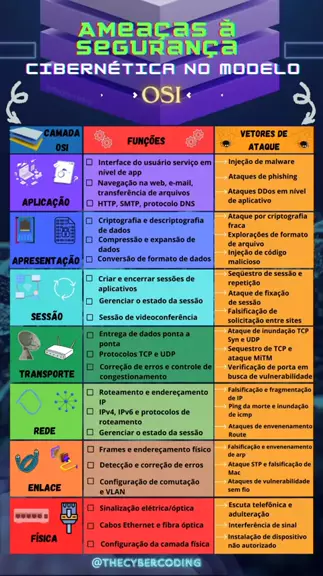 Ameaça à segurança cibernética no modelo OSI. A camada OSI é um modelo de referência para protocolos de comunicação em redes. #osi #computação #tech #education #redes