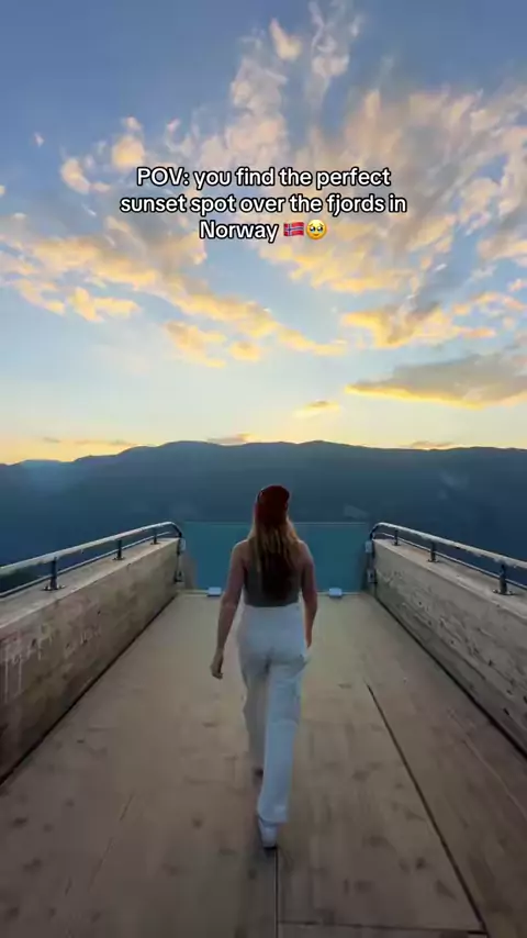 Its not far from the town of Flรฅm - make sure to include it in your Norway road trip ๐๐ โฆ. ๐ Stegastein viewpoint . . .#sunset#norwaytravel#fjord#travel