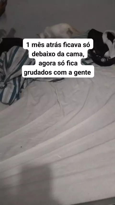 Há 1 mês atrás ficava só debaixo da cama, agora só fica grudado comigo e minha esposa #pet #gatinhos #gatos #felinos