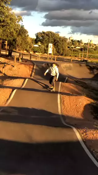 Another beautiful sunset session on this perfect track ! Can you see my speed increasing? #skateboard