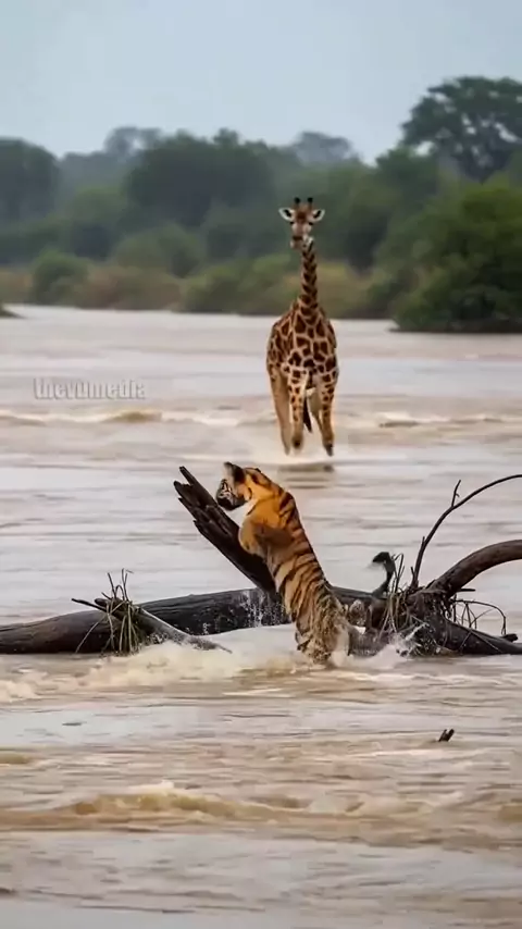 a girafa salvou o filhote de tigre