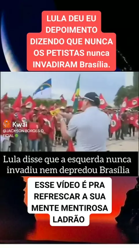 TODA VEZ QUE LULA CONTA UMA MENTIRA, A VERDADE APARECE. LULA DISSE QUE OS MILITANTES DELE NUNCA FIZERAM ARRUAÇA, OLHA ISSO! E DETALHE, OS PETISTAS CAMUFLADOS É QUEM ESTÃO QUEBRANDO TUDO NO CONGRESSO E TENTANDO INCRIMINAR OS PATRIOTAS.