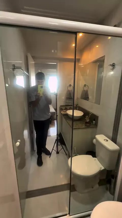 Essa transformação ficou surreal! o espelhado trouxe privacidade, estilo e um visual de luxo pro box 😍 #peliculaespelhada #film #transformação #espelho #vidros