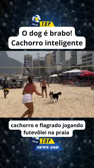 O dog é brabo! Cachorro inteligente,cachorro e flagrado jogando futevôlei na praia. #frescobol #areia #praiana #KWAINOTICIAS #Notícia
