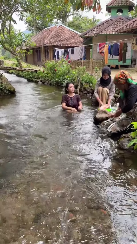 gadis desa mandi di sungai di depan halaman rumah 💞Ainifam💞 #snackstyle #sungaijernih #kampunghalaman