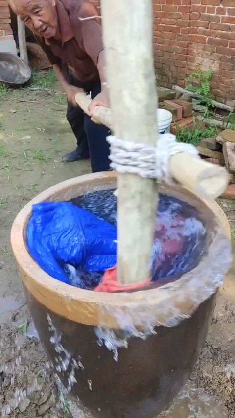A máquina de lavar em casa está quebrada e não pode ser usada. Minha esposa habilmente fez uma máquina de lavar roupa, que é bastante inútil.