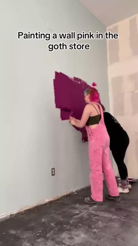 Toda loja gótica precisa de uma parede rosa brilhante, certo? # gótica # smallbusiness # alt # estética # trabalho # DIY # dayinmylife # renovação # pintura # oposto