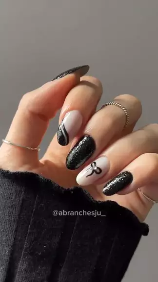 Inspiração de unhas com Laço 🖤🎀✨ #nailtutorial #viral #fy #unhas