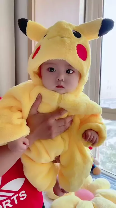 Está frio, minha sogra me deu 10.000 para comprar roupas para o bebê e me deixou com raiva por mais de uma dúzia de conjuntos. Esta roupa externa de Pikachu é muito fofa? As mães da comunidade me perguntaram onde comprei. # Mengwa usa