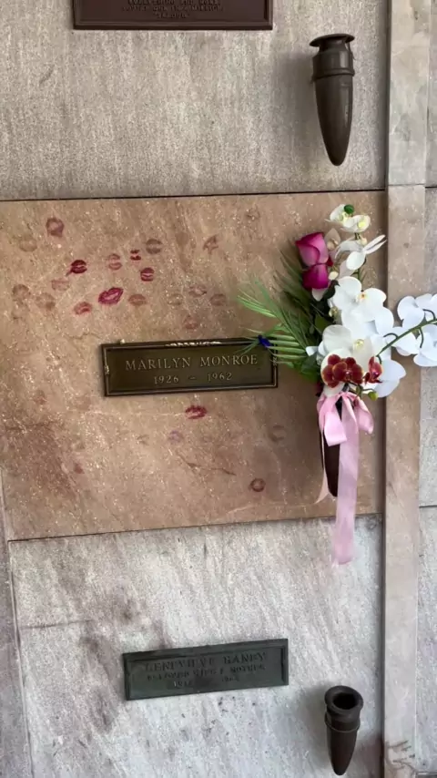 O túmulo de Marilyn Monroe mais Hugh Hefner e Richard Poncher, o homem notoriamente de cabeça para baixo acima de Marilyn # marilynmonroe # hughhefner # hollywood # famousgraves # cemitério