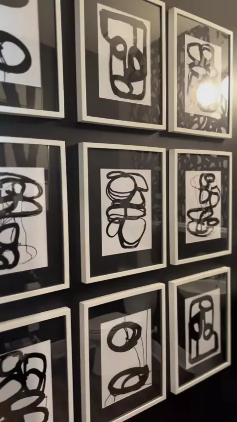 Sabor até mesmo na sala de pó. Parede de galeria bonito usando quadros Ikea Ribba e impressões de um livro de mesa de café. O custo total do projeto é de cerca de US $100. O sabor não precisa ser caro. Papel higiênico de Gives A Crap # homedecor # DIY # interiordesign #