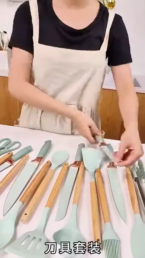 #kit da #cozinha Kit Completo Jogo Utensílios de Cozinha Luxo 19 Peças Com Tábua em Silicone Espátula Faca Tesoura