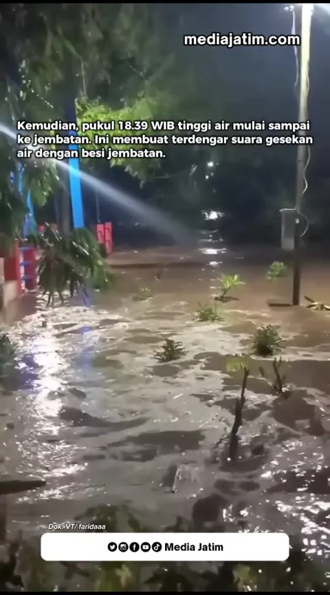 Sungai Bedadung Jember meluap usai hujan mengguyur sejak siang hingga petang. Jembatan Gantung di Dusun Darungan, Desa Jubung, Kecamatan Sukorambi putus diterjang air bah. Kepala Desa Jubung Bhisma Perdana mengatakan, debit air naik hingga mendekati jembatan gantung sejak pukul 18.00 WIB. Warga segera menutup akses jalan menuju jembatan. Sumber: detiknews #mediajatim #lebihtahujawatimur #mengawalsampaituntas #jember #sungai