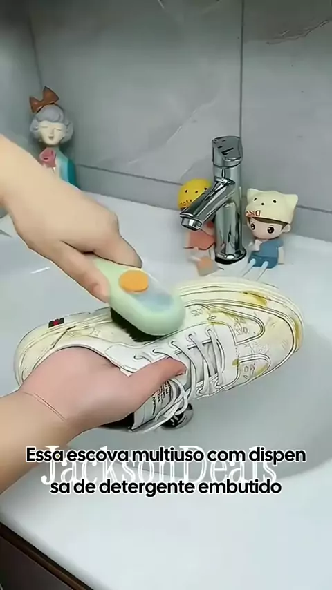 Escova prática que facilita a limpeza de tênis, roupas e sapatos! escovamultiuso limpezafacil detergenteembutido limpezadecalcados organizaçãodoméstica