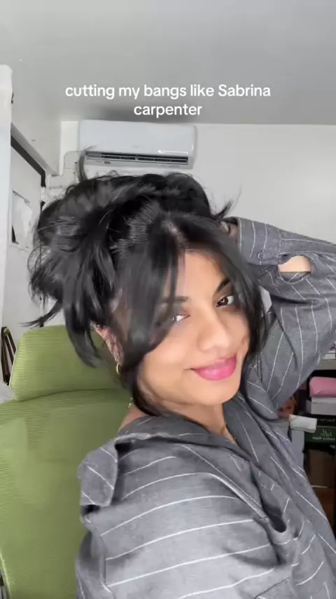 O que você acha, eu acho que é meio fofoeeee ✨ # hair # hairtutorial # hairtok # hairstyle # cuttinghair # bangs # hair # curtainbangs