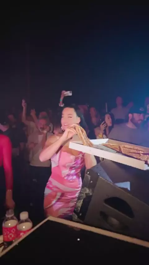 Kate Perry lança pizza sobre o público em uma danceteria. Simbolismo para quem entende o pizzagate. 🍕 Para os fãs da Kate Perry que se irritaram com a postagem: Não é a única referência entre Kate Perry e Pizza. Há várias. Kate Perry também fala sobre canibalismo, até fez um video sobre isso. Em video ela afirmou ter vendido a alma ao diabo. Ela foi a escolhida do Deep State para cantar na inauguração do Regime Biden. Ela foi ao met gala vestida de hot dog, código pedo