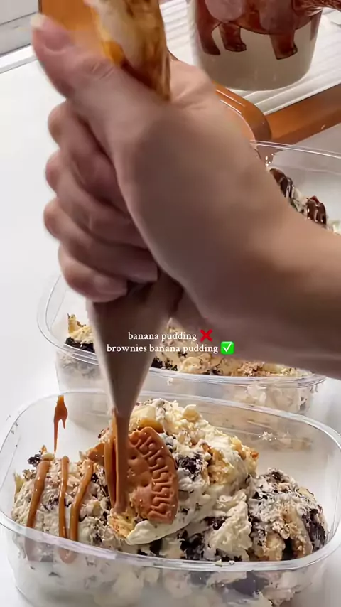 FIRST BROWNIE BANANA PUDDING EVER!! by a cake a day💗 open pre-order di 🍊 #brownies #browniespanggang #browniesjakarta ##browniesbanana #SmallBusiness #