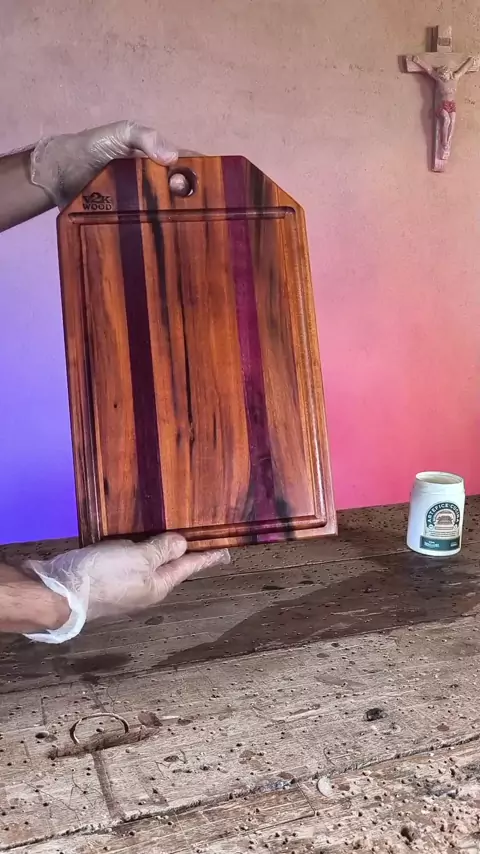 Muiracatiara e roxinho ❤️💜 E antes que me perguntem quais foram os produtos que usei, já vou falar... Só não se esqueça de curtir o vídeo 😉 Usei óleo Gif White Oil e a cera Artefice Cucina da @ironfittings #wood #diy #woodworker #madeira #artesanato