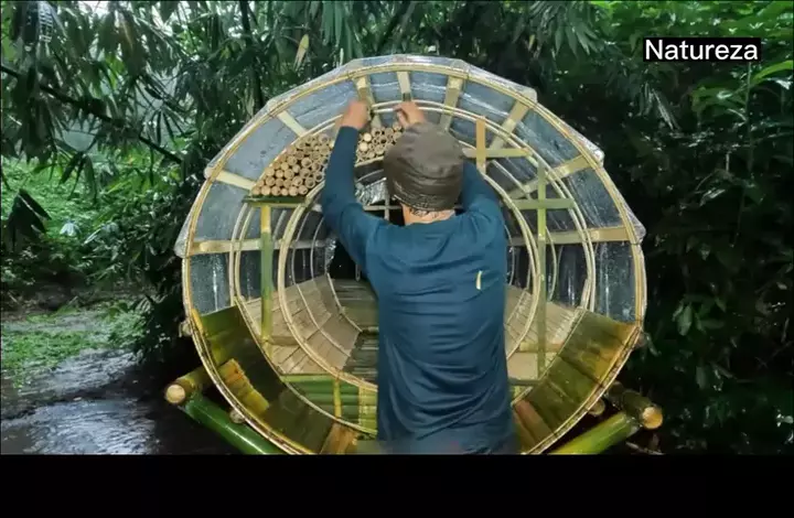 Construção de abrigo na chuva! incrível! #Chuva #cabana #abrigo