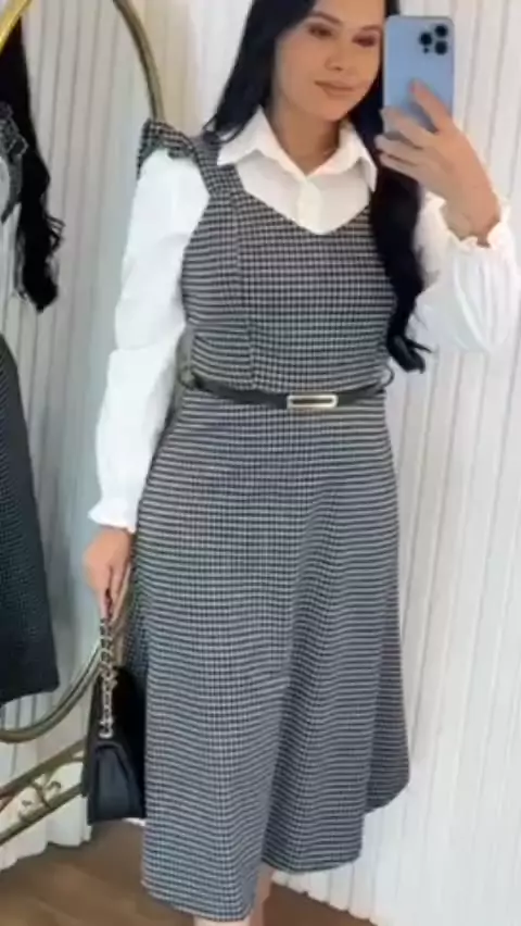 Salopete com camisa acompanha o cinto. #VesteModesta #Salopete