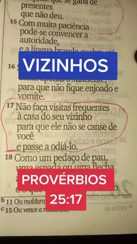 NÃO FAÇAS VISITAS FREQUENTES A CASA DE SEU VIZINHO PARA QUE ELE NÃO SE CANSE DE VOCÊ. provérbios 25:7