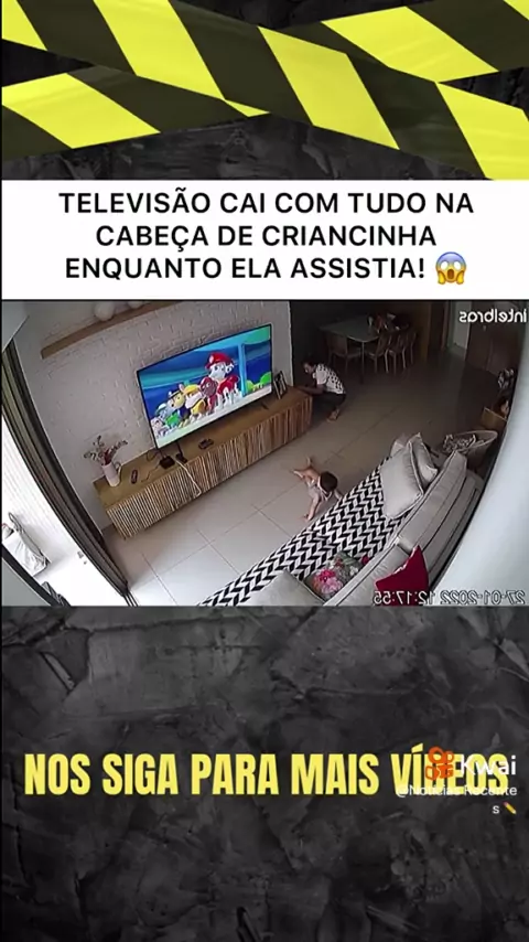 television cai com tudo na cabeça da criança
