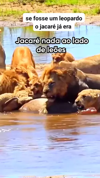 jacaré nada ao lado de leões #jacare #2025internationalshortvideocompetition #LEÕES #vidaanimal #viraliza