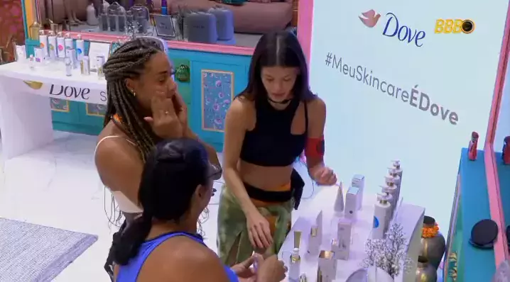 a Vi nos representando com seus produtinhos de skincare 😂 nossa diva deu ~ aulasss ~ sobre cuidados com a pele e muitas dicas para os brothers e sisters durante a dinâmica da Dove no #BBB25. como a Vi já contou lá no programa, ela tem sua rotina de skincare fora da casa e estava com saudade de ter esse momento de autocuidado! quem mais acompanhou? 🦩 #VitoriaStradaNoBBB #TeamStrada #BigBrotherBrasil #RedeBBB