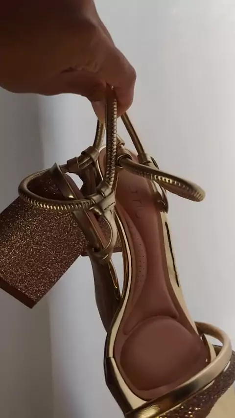 sandália feminina salto bloco Strass brilho tiras #sandalia #moda #beleza