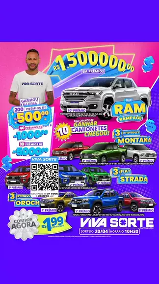 Link na bio 👈 A chance de mudar de vida chegou com tudo no Viva Sorte! Por apenas R$ 1,99, você concorre a 10 caminhonetes 0Km! São R$ 1.500.000 em prêmios, incluindo prêmios instantâneos de até R$ 5 mil nos bilhetes premiados! Garanta agora seu título e prepare-se para gritar: EU GANHEI! #vivasorteoficial #vivasortenaband #vivasorte