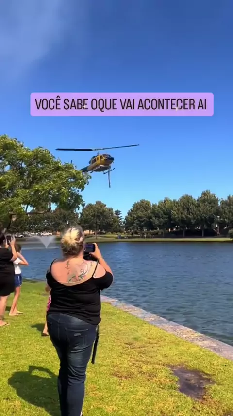Cena curiosa com aproximação do helicóptero no lago e após alguns segundos vai embora #asasrotativas #helicóptero #aviação