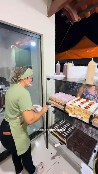 vendendo fatias de bolo #bolo #torta #doce #Comida