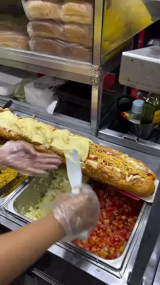 cachorro quente gigante #salsicha #lanche #cachorroquente #Comida