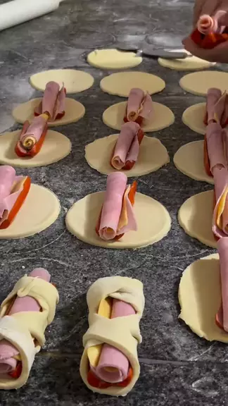 salgado assado recheado com salsicha e presunto e queijo #Salgado #Comida #Padaria #panificacao