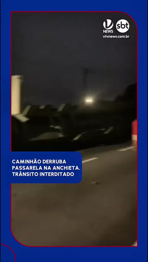NO CHÃO 💥 Passarela que desabou interdita as duas vias da rodovia Anchieta. Caminhão colidiu com a estrutura no início da noite desta quinta-feira (13) #acidente #anchieta #passarela #caminhão #cubatao