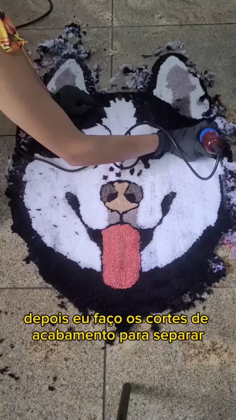Tapete personalizado do Husky Snow 🖤🤍 - 76 x 52. Caso você tenha gostado e também quer um tapete personalizado, entre em contato com a gente! Faremos um orçamento para você e iniciaremos o processo do seu tapete com todo amor e carinho ❤️🦊 #husky #tapetepersonalizado #tufting #decoraçao #cachorro