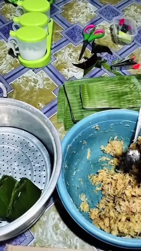 resep botok udang rebon bawang merah, bawang putih,serius jahe,serius kunyit,cabe sesuai selera, setengah kilo udang rebon dan satu butir kelapa muda parut #dapuryuni
