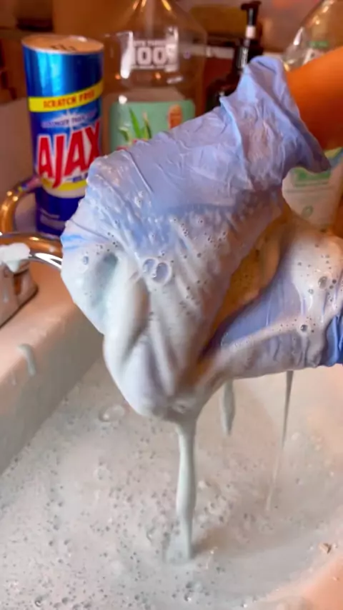 The first squeeze was god awful but I loved the consistency and smell of this 🙂💛 The homemade ss made out of pinalen + foca.#cleaningasmr💕🧼🧽🧻#spongesqueezingasmr#CleanTok#sudssquad🧼#spongesqueezing#ajaxpowder#mrcleanfebreeze
