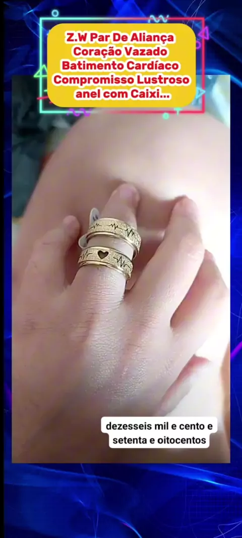Z.W Par De Aliança Coração Vazado Batimento Cardíaco Compromisso Lustroso anel com Caixi... #ouro #coleção #aliança #casamento #casa